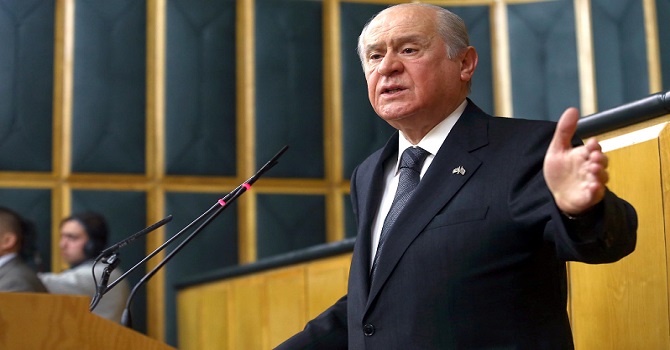 Bahçeli, "Türkiye’nin siyasi ve toplumsal tansiyonu normal sınırlara henüz inmiş değil. Hala kanama riski, hala felç ihtimali var ve görülüyor. Karışıklıktan nemalanmaya çalışan,huzurumuza kaynak yapan,kendilerini gizleyip meydanı taşa tutan ilkesiz ve çıkarcılara da sık rastlanıyor. Ümitle bekledikleri kaos için el ovuşturan, kavga çıkması için el sallayan, karanlığa alkış tutan odaklar 16 Nisan’da tamamen kaybedecekler. Bir tohumu düşünün, güneşe ulaşmak için yolundaki taşları nasıl da iter,üzerindeki taşları nasıl da geçer. İşte,16 Nisan’a böyle ulaşacağız. Yüksek bir ülküye bağlanmanın manevi mükâfatı eşsizdir. Bunu ancak davasında erimiş, yüreğiyle mücadele etmiş üstün şahsiyetler bilir. Aklımızdan bir an çıkarmayalım, yürüdüğümüz yolda engel yoksa o yol bizi hiçbir yere götürmez. Ancak engellerin çokluğu da normal değildir. Usta kaptanlara sorun,her fırsatta büyük fırtınaları nasıl atlattıklarını anlatacaklardır. Her bir fırtına ibret,her biri ders ve tecrübedir. Bizim hamd olsun tecrübemiz fazlasıyla vardır. Nitekim hiç kimseden alacak, görecek ve öğrenecek bir şeyimiz de yoktur. Bakıyorlar dam karla örtülü,sanıyorlar içeri gam yüklü. Ama yanılıyorlar,kesin yanlışa düşüyorlar.Ne aradığını bilmeyen, bulduğunu anlayamaz" dedi.