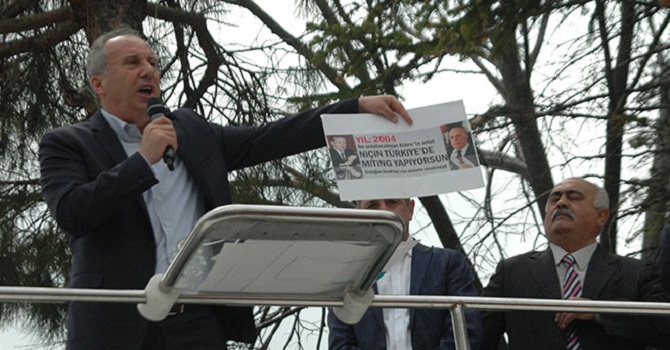 Bugünün kendisini zor şartlarda büyüten kamyon şoförü olan babasının ölüm yıldönümü olduğunu hatırlatan İnce, "Şimdi size soruyorum; zenginin çocuğu milletvekili olacak, garibanın, fakirin çocuğu da El Bab'da, Suriye'de şehit olacak. Yok böyle bir şey" dedi. Referandumda 'evet' demeleri durumunda Cumhurbaşkanı'na 6 ay OHAL yetkisinin verilmiş olacağını savunan İnce, şunları söyledi: