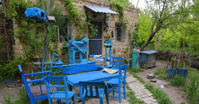Hayalindeki evi yaptı: Kentten uzak, her şey mavi FOTO GALERİ