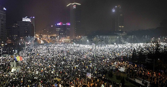 Romanya'nın eski devlet başkanı Nikolay Çavuşesku'nun 1989'da idam edilmesine yol açan eylemlerden beri ülkeyi sarsan en büyük protesto dalgasının 6. gününde Romanya bayrağı taşıyan eylemciler 'İstifa' sloganları attı.