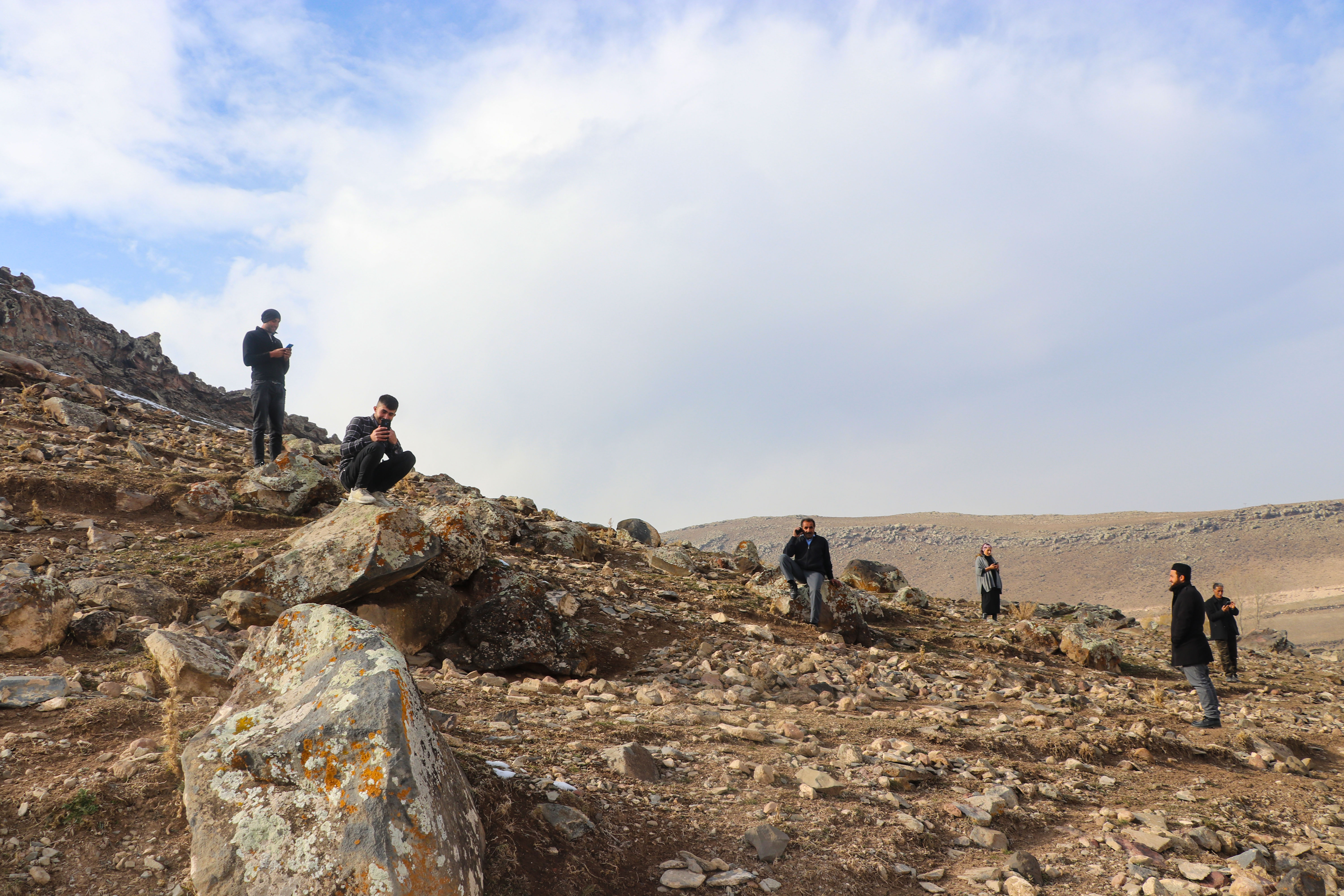 Iğdır'da cep telefonu hatlarının çekmediği Pınarbaşı köyünde yaşayanlar, görüşme yapabilmek için şebeke sorununun olmadığı dağa çıkıyor.