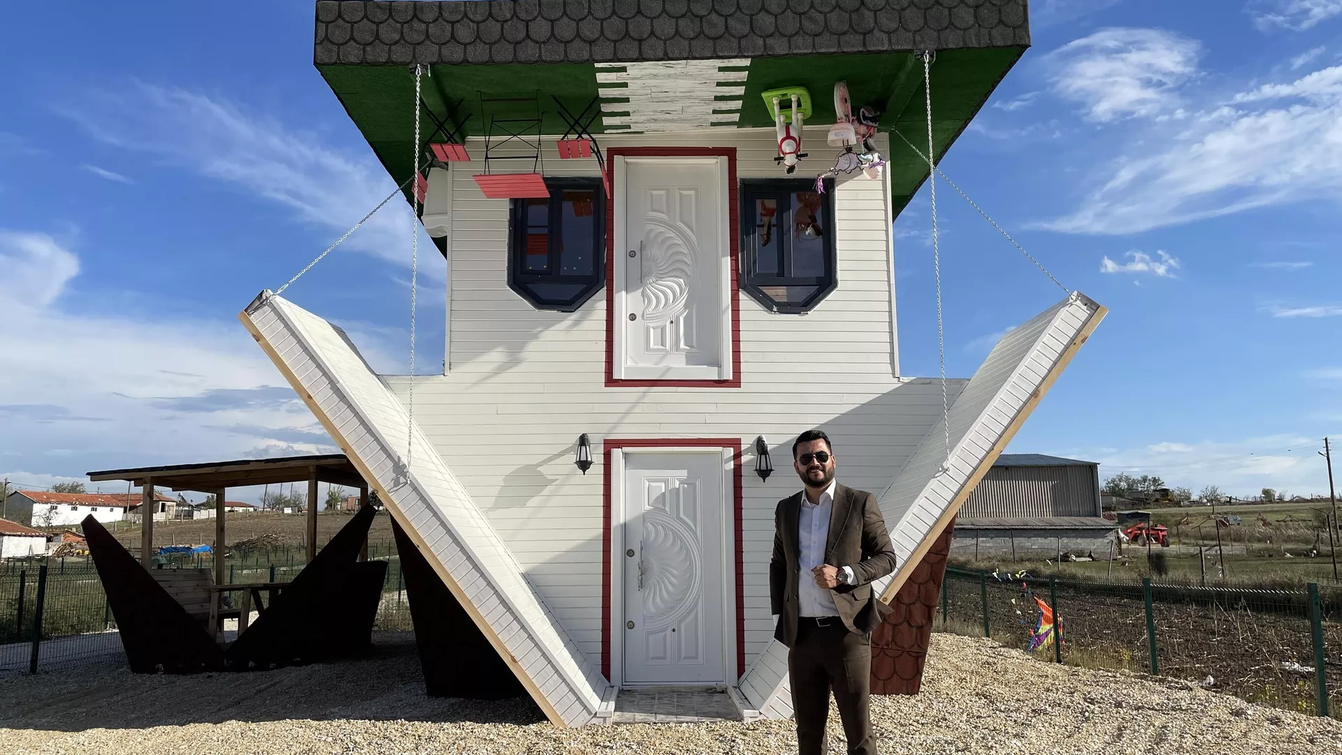 “Burasının yapılış amacı 2015 yılından beri başımıza gelen kötü olaylardır. Hain bir darbe girişimi yaşadık. Hemen arkasından bir ekonomik kriz oldu. Bunların ardından dünyayı ve ülkemizi kasıp kavuran pandemi bizi derinden etkiledi, 2 yıl evimizden çıkamadık. Karadeniz'de, İç Anadolu'da yaşanan doğal afetler; derelerin taşması, insanların evlerini kaybetmesi bizleri çok üzdü. Yaşanan 6 Şubat Depremi bizleri hem maddi hem manevi olarak etkiledi. İnşallah Allah bu yaşanan olayların tekrarını yaşatmasın. 2015 yılından 2024 yılına kadar yaşanan bu olaylar 9 yıldır yaşamımızı ters olarak etkiliyor. Bizler de mizah amaçlı ters ev yapmak istedik ve ailemizle birlikte burada hafta sonları vakit geçireceğiz.”