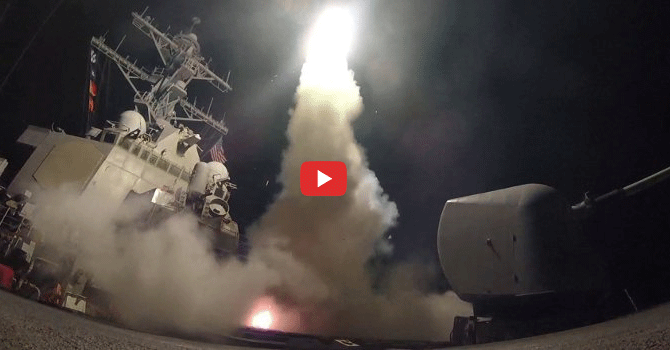 3.45: Humus’taki Şayrat Hava Üssü’ne ABD tarafından hava saldırıları düzenlendi. Akdeniz’in batısındaki iki Amerikan destroyerinden 59 Tomahawk füzesi atıldı. Üsteki pistlerin, askeri teçhizatın ve yakıt deposunun yok edildiği belirtiliyor.