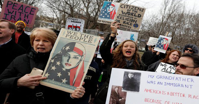 CNNTÜRK‘te yer alan habere göre, ABD ve dünyanın gündemine oturan Trump’ın bazı Müslüman ülkelere uyguladığı vize yasağına büyük bir tepki de kendi ülkesinden geldi. 16 eyaletin başsavcıları Trump’a karşı ortak bir kınama metni yayımlayarak yasağı eleştirdi.