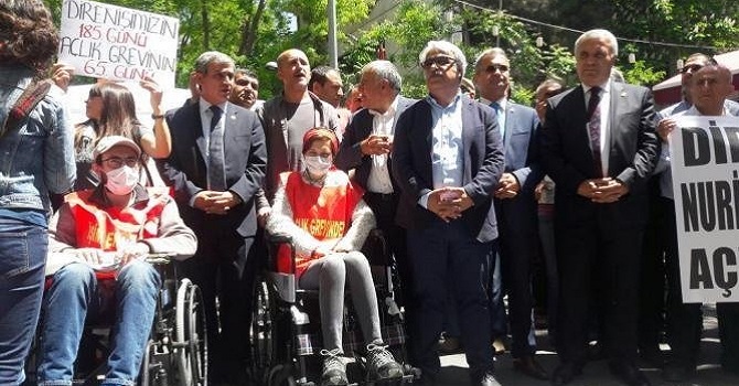 Olağanüstü hal (OHAL) kapsamında çıkarılan Kanun Hükmünde Kararname (KHK) ile görevlerinden ihraç edilen araştırma görevlisi Nuriye Gülmen ve öğretmen Semih Özakça'nın görevlerine iade edilmek için başlattıkları açlık grevlerinin 65'nci gününde, Avrupa Parlamentosu Sosyalistler ve Demokratlar İlerici İttifakı Grubu Başkanı Gianni Pitella'nın yanı sıra, CHP Ankara Milletvekili Necati Yılmaz, HDP Milletvekili Mithat Sancar ve çok sayıda sivil toplum kuruluşu destek vermek için bir araya geldi.