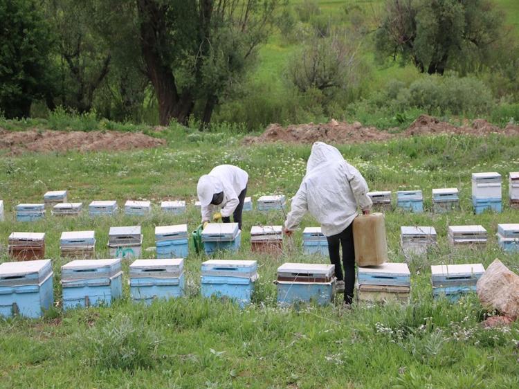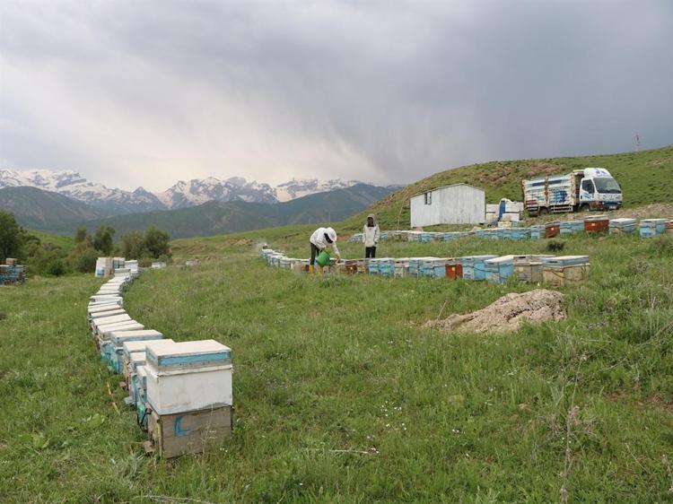 Hakkari'ye 27 yıldır bahar aylarında gelen Adanalı arıcı Emine ve Osman İbili çifti, üretimlerini her yıl artırarak 200 kovandan 850 kovana çıkardı.