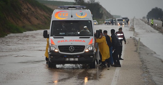 Aynı bölgede sel sularına kapılan 2 aracın da sürüklenmekte olduğu bildirildi.