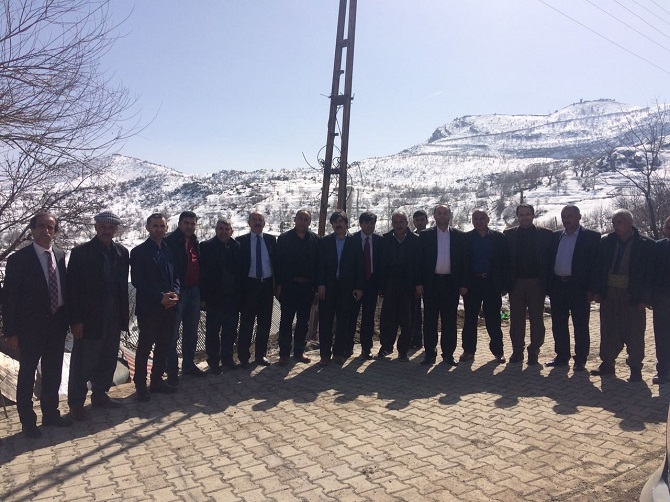 AK Parti Hakkari İl Başkanlığı yetkilileri, referandum çalışması kapsamında Hakkari'nin Çukurca ilçesinde vatandaşlarla bir araya geldi.