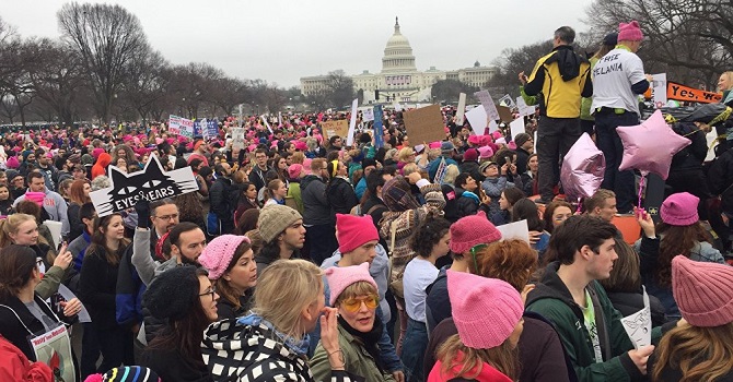 Dünya çapında 673 noktada geçekleştirilen Women’s March'in merkezi, dün Trump'ın başkanlık yemini ettiği Washington