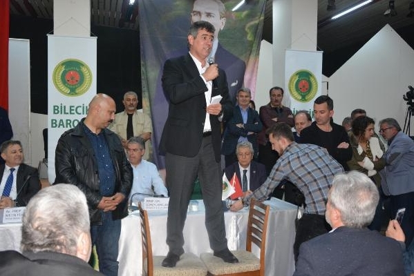 Türkiye Barolar Birliği (TBB) Başkanı Metin Feyzioğlu, Bilecik'teki toplantıda iki sandalye üzerine çıkıp yaptığı konuşmasında, "Halk oylamasına sunulacak bir anayasa paketinin hiç kuşkusuz anlatılacak yeri halktır. Bu bizim kanuni vazifemiz" dedi.
