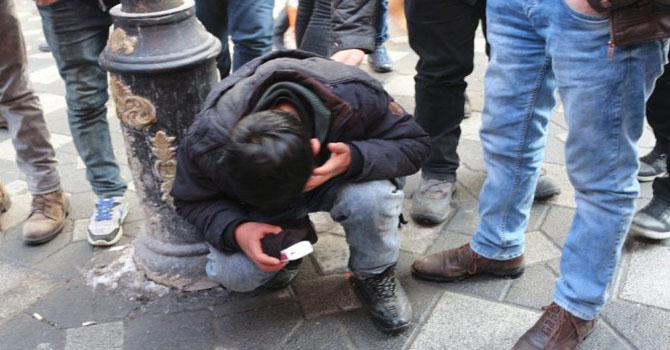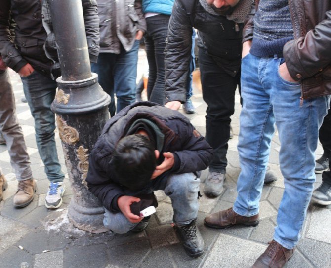 Kafasına çatından buz sarkıtı düşen mendil satan bir çocuk yaralandı.