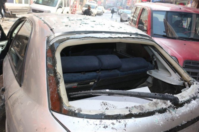 Öte yandan başka bir binanın üzerinde biriken kar kütlesinin park halinde duran aracın üzerine düşmesi sonucu aracın arka camı kırıldı. Araçta büyük tahribat oluştu.