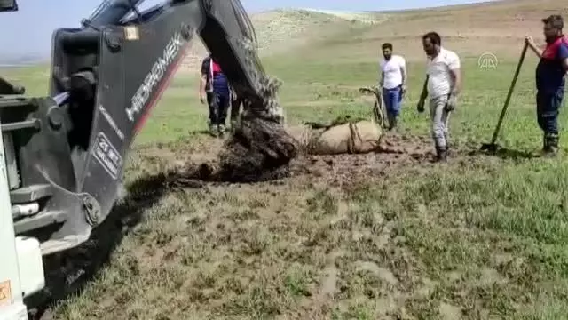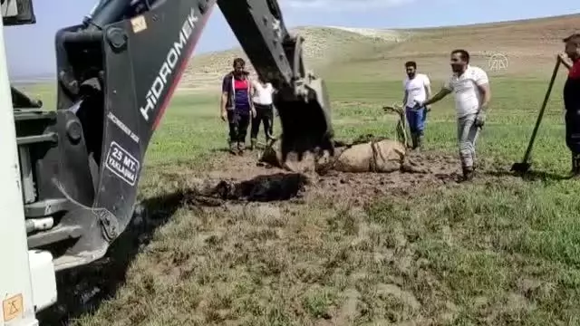 Van'ın Özalp ilçesinde çamura saplanan inek itfaiye ekipleri tarafından kurtarıldı.