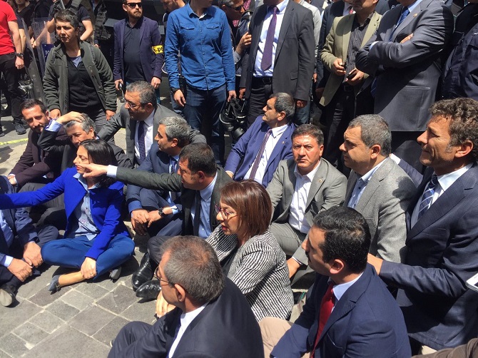 Semih Özakça ve Nuriye Gülmen’in tutuklanmalarının ardından CHP milletvekilleri eylem takvimi oluşturmak üzere toplandı. Toplantının ardından İnsan Hakları Anıtı önüne gitmek isteyen CHP’li vekillerin sokağa girişine izin verilmedi. Bunun üzerine milletvekilleri oturma eylemi başlattı.