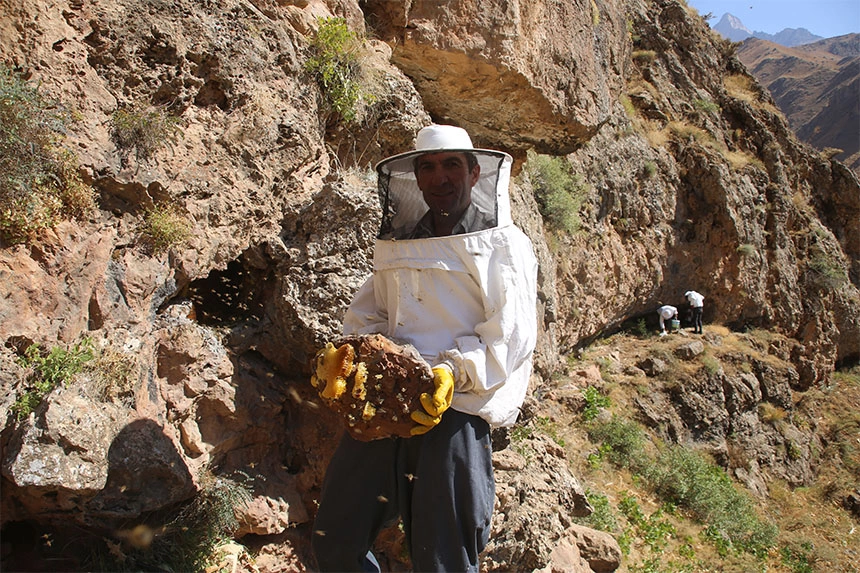 Hakkari'nin Kırıkdağ köyünde yaşayan Hamdi Akdoğan, Cilo Dağı eteklerinde 11 yıl önce keşfettiği kaya balını 3 bin rakımlı dağlardan çıkartırken, kilosunu bu sene 2 bin 500 TL’den satışa çıkarttı.