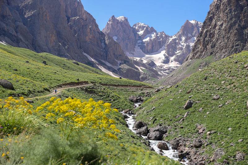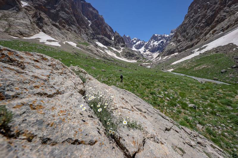 Hakkari'de yazın ve kışın bir arada yaşandığı Cilo Dağları, eşsiz doğası ve bozulmamış yapısıyla son günlerde yüzlerce doğasever, fotoğraf tutkunu ve dağcıya ev sahipliği yapıyor.
