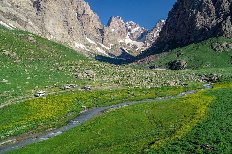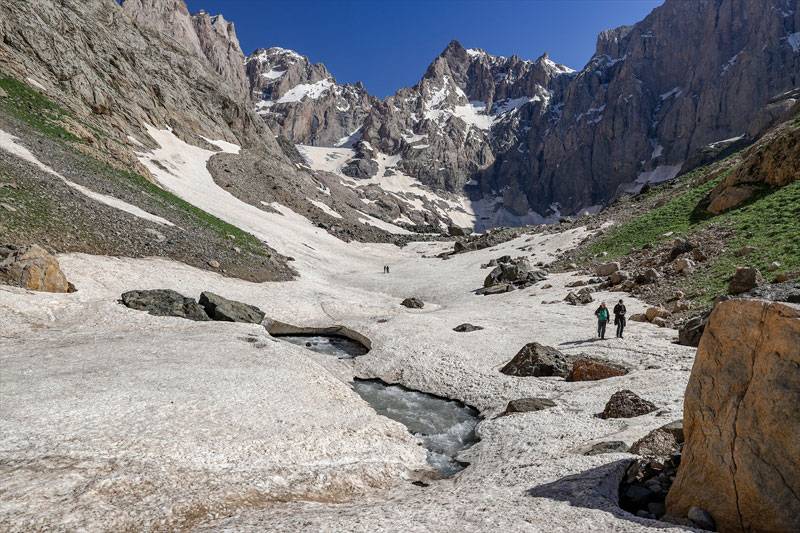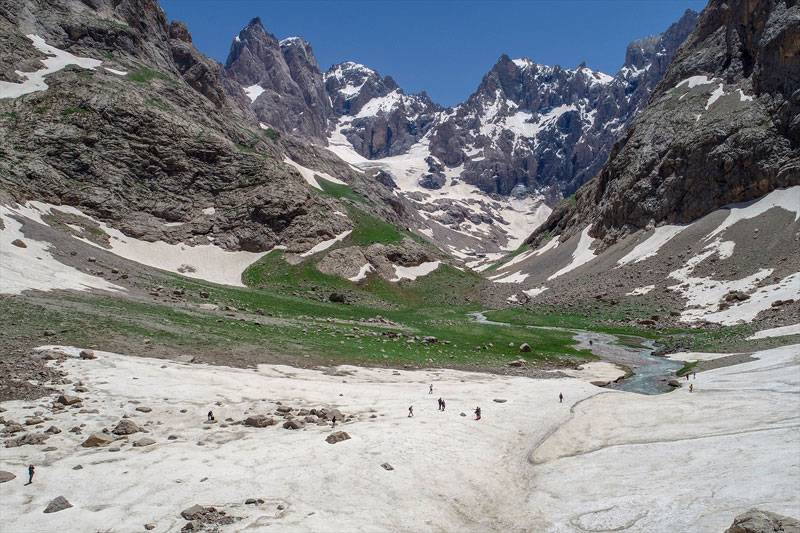 Her gün kafileler halinde gelerek Türkiye'nin en yüksek ikinci zirvesi olan 4 bin 135 rakımlı "Uludoruk" ile eteklerindeki buzulları gezen doğaseverler ve fotoğraf tutkunları, bölgede kamp kurup fotoğraf çekerek eşsiz manzaranın tadını çıkarıyor.