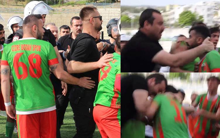 Emniyet Amiri Şuayip Öğdür’ün koruması polis A.A., Cizre Botanspor futbolcusuna kafa attı. Bu hareketin ardından sahada ve tribünlerde tansiyon daha da yükseldi.