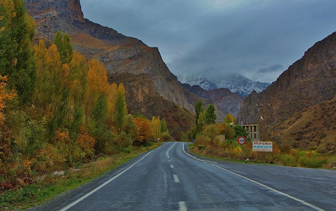 Sonbahar renklerinin her tonunun doğayı süslediği, cömertçe seyrimize sunduğu Zap Vadisinde ilerliyorum. Son günlerde yoğun şekilde yağan yağmurlardan gürleşen Zap Nehri yarı bulanık bir şekilde vadinin derinliklerinde coşkuyla akıyor.