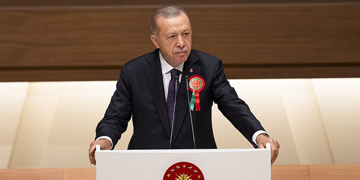 Cumhurbaşkanı Erdoğan, dünyanın geçen asırda kurulan siyasi ve ekonomik güç dengelerinin kökünden sarsıldığı bir dönemden geçtiğine işaret ederek, küresel finans kriziyle başlayıp koronavirüs salgınıyla derinleşen, Ukrayna-Rusya savaşıyla kapsamı genişleyen bu sürecin, Türkiye'yi de tarihi bir yol ayrımına getirdiğini belirtti.