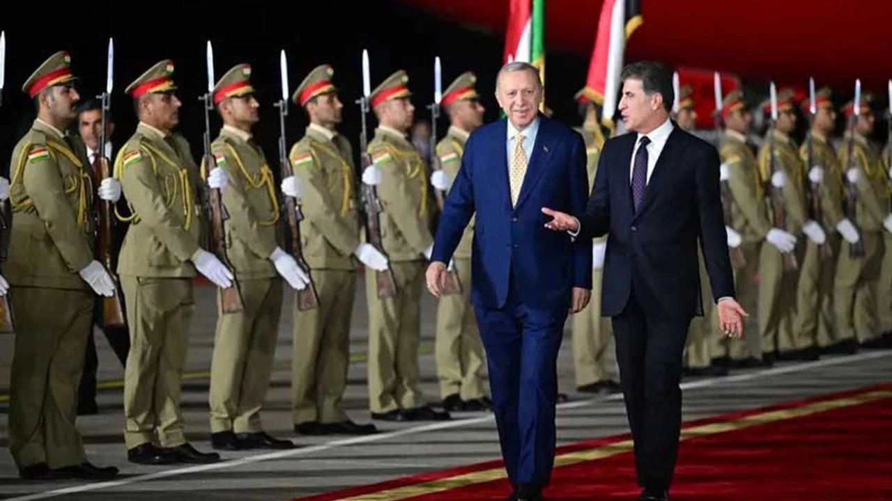 Erdoğan'ın uçağı IKBY'nin başkenti Erbil'deki havalimanına indi. Erdoğan'ın havalimanında resmi törenle karşılandı.