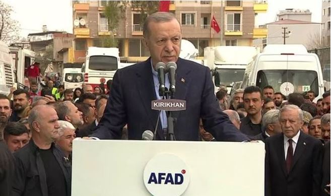 ANKA Haber Ajansı'nın haberine göre, Cumhurbaşkanı Erdoğan, MHP Genel Başkanı Devlet Bahçeli, Milli Savunma Bakanı Hulusi Akar, İçişleri Bakanı Süleyman Soylu ve Sağlık Bakanı Fahrettin Koca ile birlikte, Hatay’ın Kırıkhan ilçesinde çadırkenti ziyaret etti.