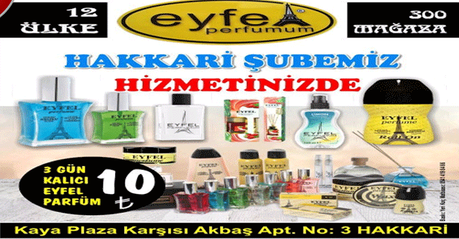 Uygun fiyata kaliteli parfümün Hakkari’deki adresi Eyfel Parfüm Bulvar Caddesi üzerinde bulunan Kaya Plaza karşındaki Akbaş Apartmanının birinci katında hizmet veriyor.