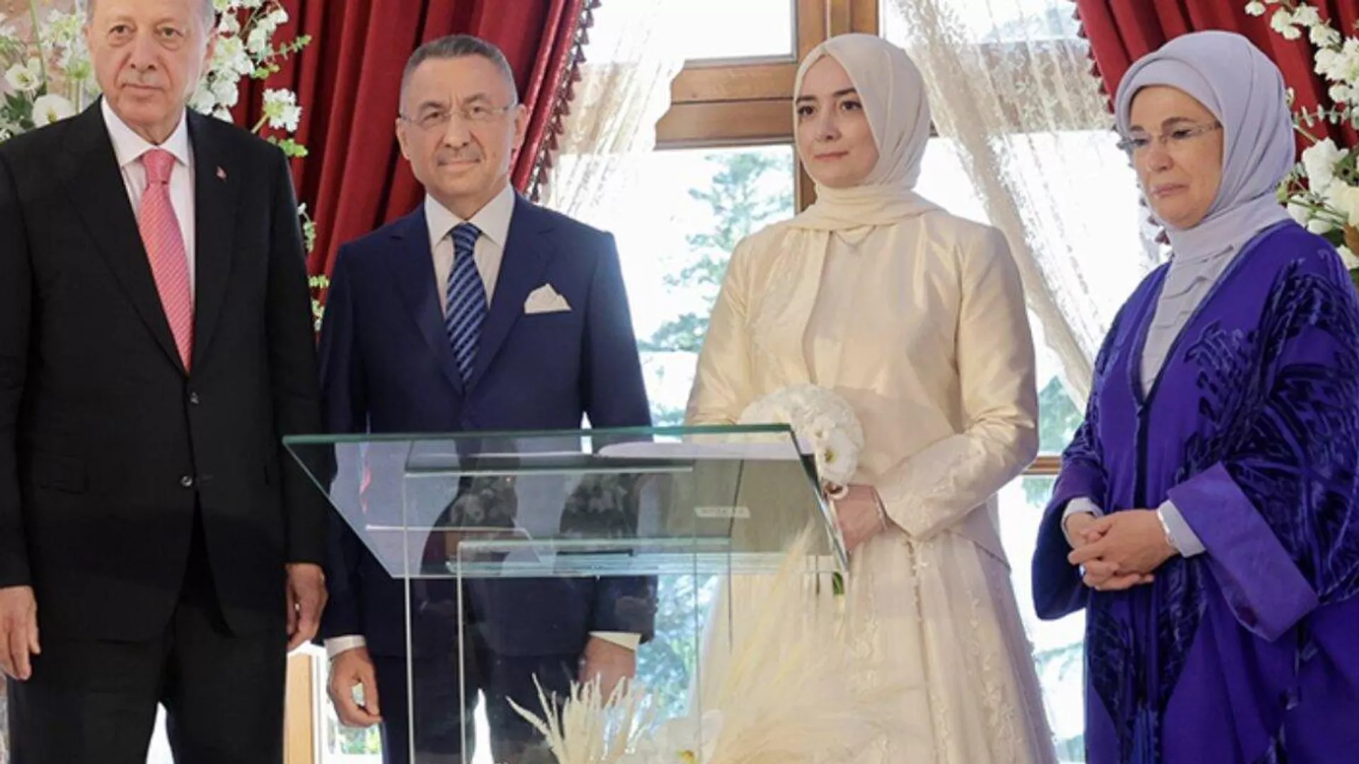 Cumhurbaşkanı Yardımcısı Fuat Oktay ve Cumhurbaşkanı Danışmanı Hümeyra Şahin, Erdoğan çiftinin şahitlik yaptığı nikah töreniyle evlendi.