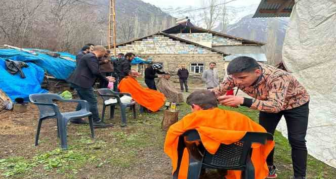 Hakkari'nin Şemdinli ilçesindeki Mevlana Mesleki ve Teknik Anadolu Lisesi bünyesinde açılan kuaförlük kursunda eğitim gören öğrenciler, Uğuraçan köyünde vatandaşları ücretsiz olarak tıraş etti.