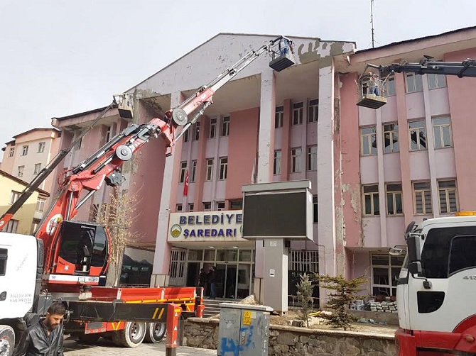 Hakkari Belediye hizmet binasının dış cephesi için onarım çalışmaları başladı.
