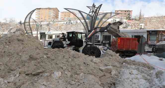 Hakkari'de kar yağışının etkisini kaybetmesiyle birlikte kara gömülen çarşı merkezinde belediye ekipleri tarafından 3 ayrı koldan çalışma başlatıldı. 14 araç ve 40 personel ile yapılan çalışmalarda kent merkezinde biriken kar yığınları, kamyonlara yüklenerek kent dışına çıkartılıyor.