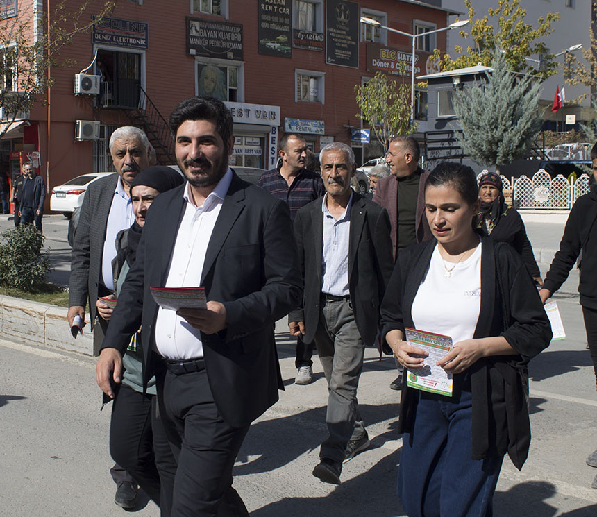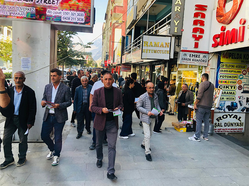 Açıklamanın ardından Milletvekili Düşünmez ve DEM Parti yöneticileri mitinge katılım için esnafa el ilanı dağıttı.