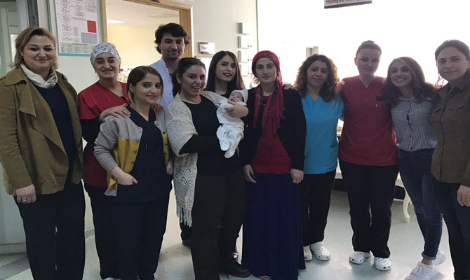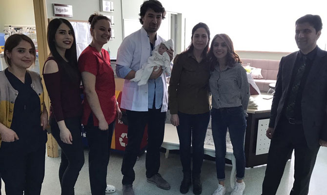 Bebeğin sağlığına kavuşmasının ardından serviste görev yapan doktor, sağlık personelleri ve hemşireler kutlama programı düzenledi.