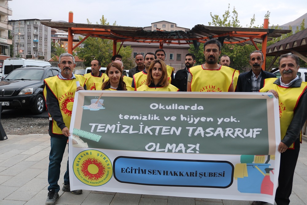 KESK’ bağlı Eğitim Sen Hakkari Şubesi İşgücü Uyum Programı sebebiyle okullarda yalnızca 3 gün temizlik yapılmasına tepki gösterdi.