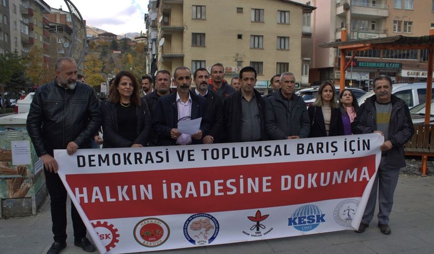 Hakkari Emek ve Demokrasi Platformu Mardin Belediyesi'ne, Batman Belediyesi’ne ve Şanlıurfa'nın Halfeti Belediyesi'ne kayyum atanmasına tepki gösterdi.