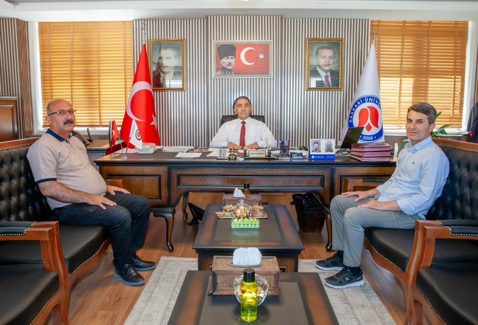 Hakkâri Esnaf ve Sanatkârlar Odası Başkanı İsmail Akboğa, Hakkâri Üniversitesi Rektörlüğü görevine atanan Prof. Dr. Musa Gençcelep’i makamında ziyaret etti.