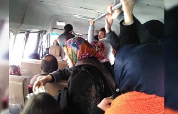 Çarşı merkezinde yolcuları full doldurup yola çıkıyor, yoldan minibüse binen kişilerin yer bulmaları