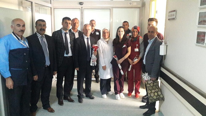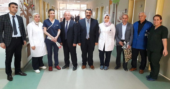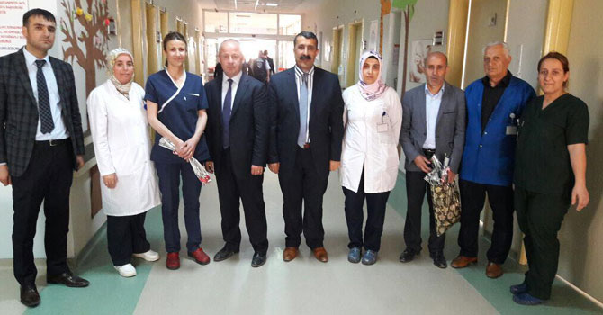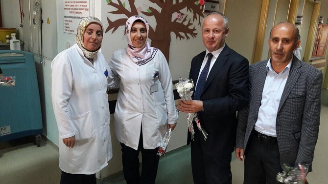 Sağlık Sen Hakkari Şube Başkanı Feysel Çiftçi ve beraberindeki heyet 12 Mayıs Hemşireler günü nedeniyle hastanede çalışan hemşirelere karanfil dağıttı.