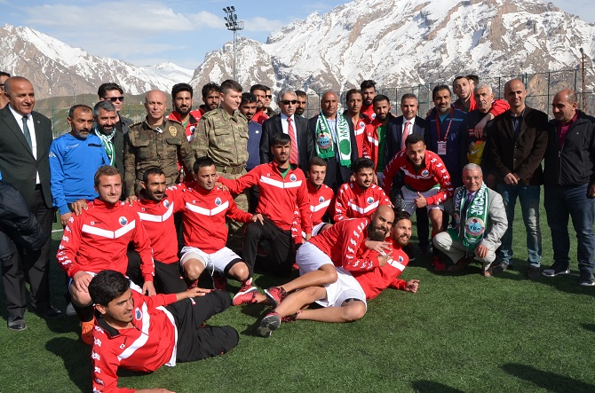 Karşılaşma sonrası Yüksekova Belediye sporlu futbolcuları tebrik eden Vali Cüneyit Orhan Toprak ve beraberindekiler, takımla galibiyet fotoğrafı çekti.