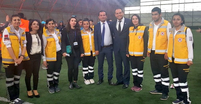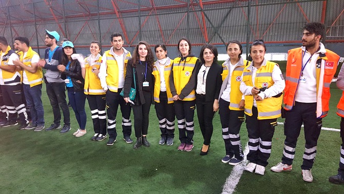 Van Yüzüncü Yıl Üniversitesi Halı sahasında gerçekleştirilen rallide, öğrenciler 5 etapta vakalara en doğru ve en hızlı müdahale için birbirleriyle yarıştılar.