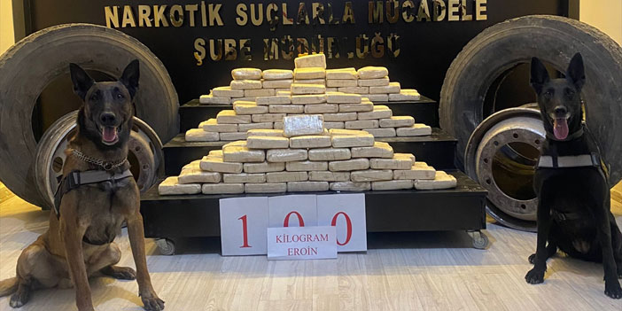 Bu kapsamda kentte tespit edilen bir araçta yapılan aramada 100 kilogram eroin ele geçirildi.