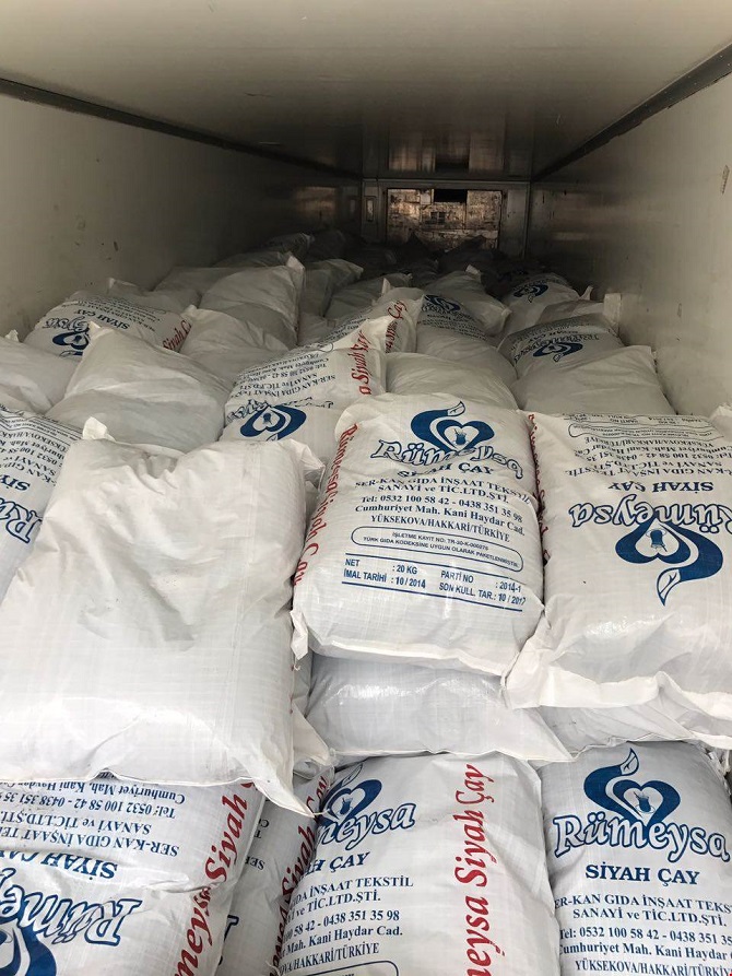 Hakkari Valiliğinden yapılan açıklamada; 03.04.2017 günü saat: 13.00 sıralarında İl Jandarma Komutanlığına bağlı Yeniköprü Jandarma Karakol Komutanlığı görevlilerimizce icra edilen yol kontrol faaliyet esnasında bir araçta(TIR) yapılan aramada toplam 12.420 kg kaçak çay ele geçirilmiştir. Konu ile ilgili adli tahkikat devam etmektedir' denildi.