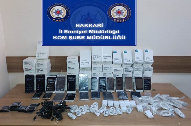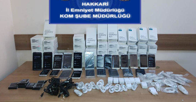 Hakkari'ye 7 km uzaklıkta bulunan Depin polis kontrol noktasında 62 adet akıllı telefon ele geçirildi.