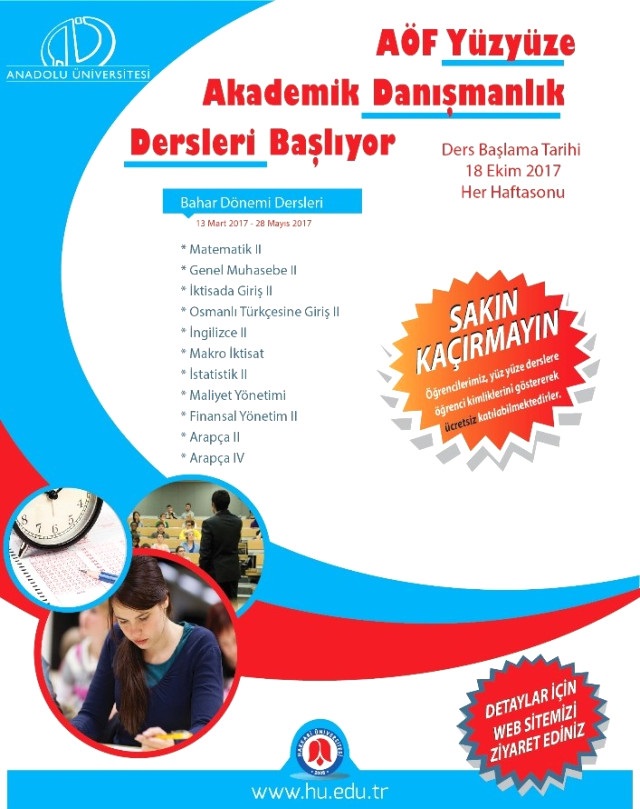 Üniversite tarafından yapılana açıklamada, 2016-2017 öğretim yılında Açık Öğretim İktisat ve İşletme Fakültelerine kayıtlı öğrencilere yönelik yüz yüze verilen dersler Bahar Döneminde 13 Mart 2017 tarihinde başlamış olup 28 Mayıs 2017 tarihinde sona erecektir.