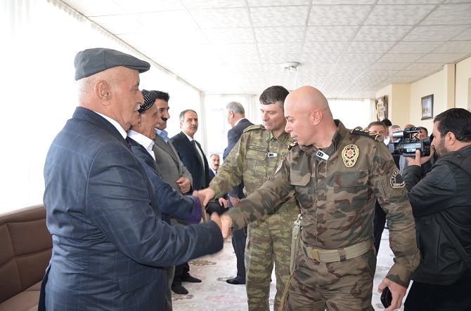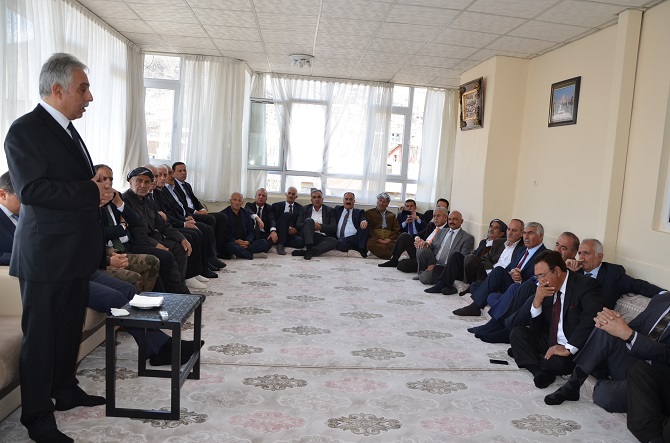 "Her seferinde aşiretlerin tüm ileri gelenlerini böyle karşımızda görmek bu davetlerimizin karşılık gördüğünü görüyoruz. Tabi bu da bize güven veriyor. Çünkü biz de size güveniyoruz. Yani bu uyum, birlik , beraberlik olduğu zaman sorunların çözümü konusunda işin yüzde 90'ı demektir. Biz bu birlik , beraberliğimizi muhafaza ettirdiğimiz sürece bu bahs etmiş olduğumuz sorunları çözümü yönünde hiç bir engel önümüzde duramaz. Önümüzde de bir referandum süreci var.Onu da kazasız , belasız herkesin özgür iradesini sandığa yansıttığı, hiç bir örgütün, aşiretin veya bir grubun baskısına maruz kalmadan özgür iradesiyle kullanabilmesi için, hiç bir engel önlerinde kullanması için kolluk kuvvetlerimiz 24 saat kafa yoruyorlar. Amacımız halkımızın iradesinin özgür şekilde sandığa yansıtmasıdır. Halkımız okur değerlendirir. Neyi uygun görürse oyunu kullanır. Bizim amacımız bu ortamı temin etmek. Onun için buradaki vatandaşlarımız Polise, jandarmamıza güvenerek herhangi bir sıkıntı veya baskıya maruz kaldığında bunu kabullenmemeleri ve bizlerle irtibata geçmelerini istiyoruz"
