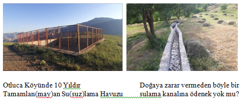 10 yıldır tamamlanan lakin su yüzü görmeyen hala susuz köy sulama havuzu, çöp arabaları alınan fakat yaz aylarının kavurucu sıcaklarına rağmen; buz tutmuş, kardan kapalı yollardan dolayı günlük alınmayan kokuşmaya bırakılan çöpler, başlatılıp sonu getirilemeyen yollar, denetlenmeyen, yarım yamalak kalan nice hizmetler gibi…