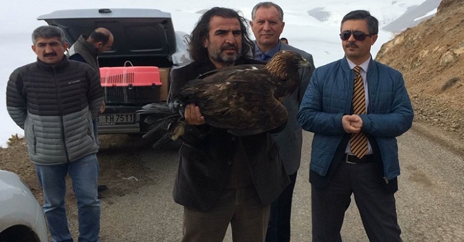 Orman ve Su İşleri Bakanlığı 14. Bölge Müdürlüğü ekipleri, Hakkari ve Siirt'ten vatandaşlar tarafından kendilerine teslim edilen ve YYÜ Yaban Hayvanları Koruma ve Rehabilitasyon Merkezine getirilerek tedavileri yapılan kaya kartalları doğal ortamlarına bırakıldı. İki kaya kartalı, Doğa Koruma ve Milli Parklar 14. Van Bölge Müdürü Mustafa Şentürk, Doğa Koruma ve Milli Parklar 14. Van Bölge Müdür Yardımcısı Hüseyin Avcil, Doğa Koruma ve Milli Parklar Van Şube Müdürü Yunus Bakıcı, YYÜ Yaban Hayvanları Koruma ve Rehabilitasyon Merkezi Müdürü Doç. Dr. Lokman Aslan ve Doğa Koruma ve Milli Parklar Müdürlüğü personeli ile birlikte Çatak ilçesindeki kayalık alana bırakıldılar. Kartallar, bir süre yamaçta bekledikten sonra uçarak gözden kayboldu.