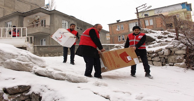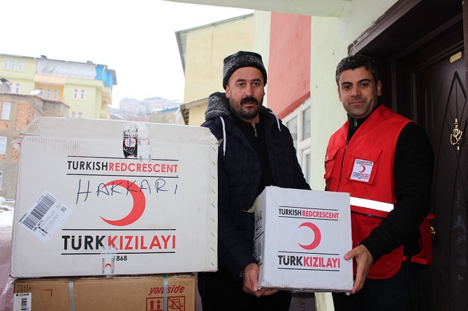Hakkari'de evleri yanan ailelere, Türk Kızılayı tarafından yardımda bulunuldu.