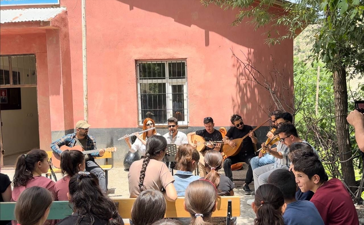 Hakkari'nin Yüksekova ilçesinde farklı okullarda görev yapan 12 öğretmen, köylere giderek öğrencilere müzik ziyafeti sunuyor.