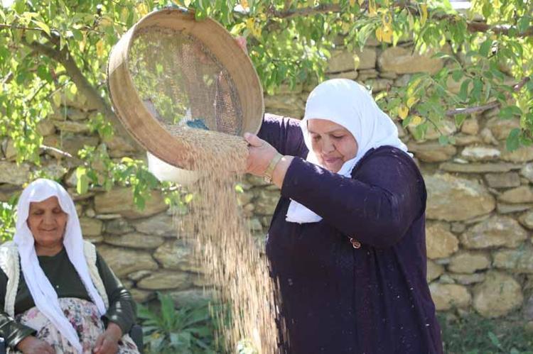 Kuruyan buğdaylarımızı hasadını yapıp, patostan geçiriyoruz. Daha sonra buğdayımızın bir kısmını, değirmende un yapamaya göndeririz. Bir kısmını da taş değirmenle öğütüp bulgur elde ediyoruz. Bu çalışmayı da köyün kadınları bir araya gelerek yapıyor" diye konuştu.